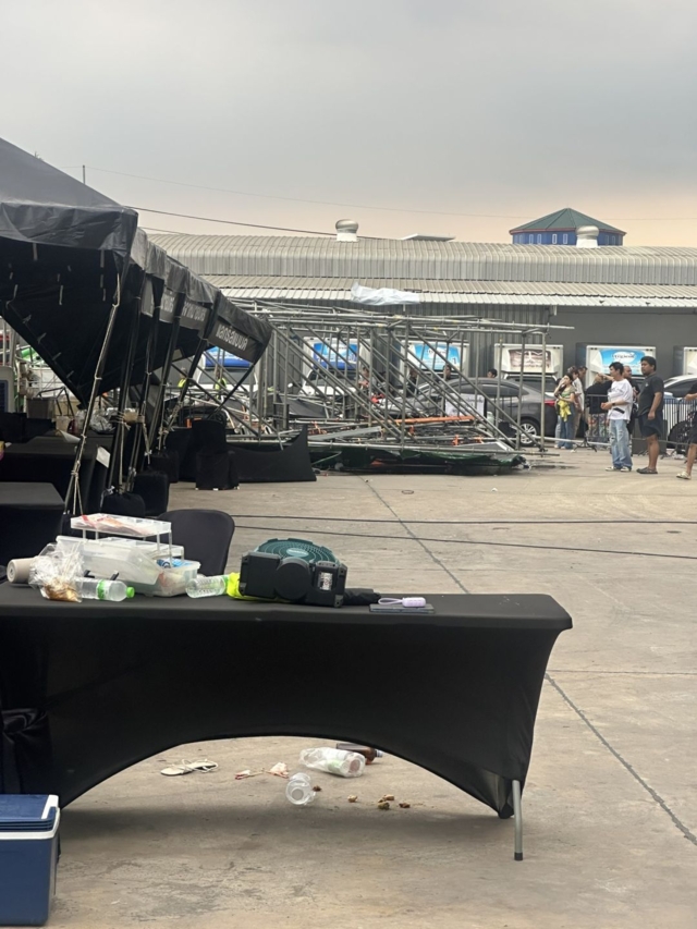 ในขณะที่กลุ่มแฟนเพลงจำนวนมากกำลังทยอยเดินทางเข้าสู่พื้นที่จัดกิจกรรมคอนเสิร์ต ได้เกิดสภาพอากาศปั่นป่วน มีลมกระโชกแรงและฝนฟ้าคะนองเกิดขึ้นอย่างกะทันหัน แรงลมที่พัดกระแทกอย่างหนักส่งผลให้ "ซุ้มประตูทางเข้างาน" ซึ่งเป็นโครงสร้างขนาดใหญ่ไม่สามารถต้านทานความแรงได้ จนเกิดการทรุดตัวและพังครืนลงมาเบื้องล่างอย่างรวดเร็ว