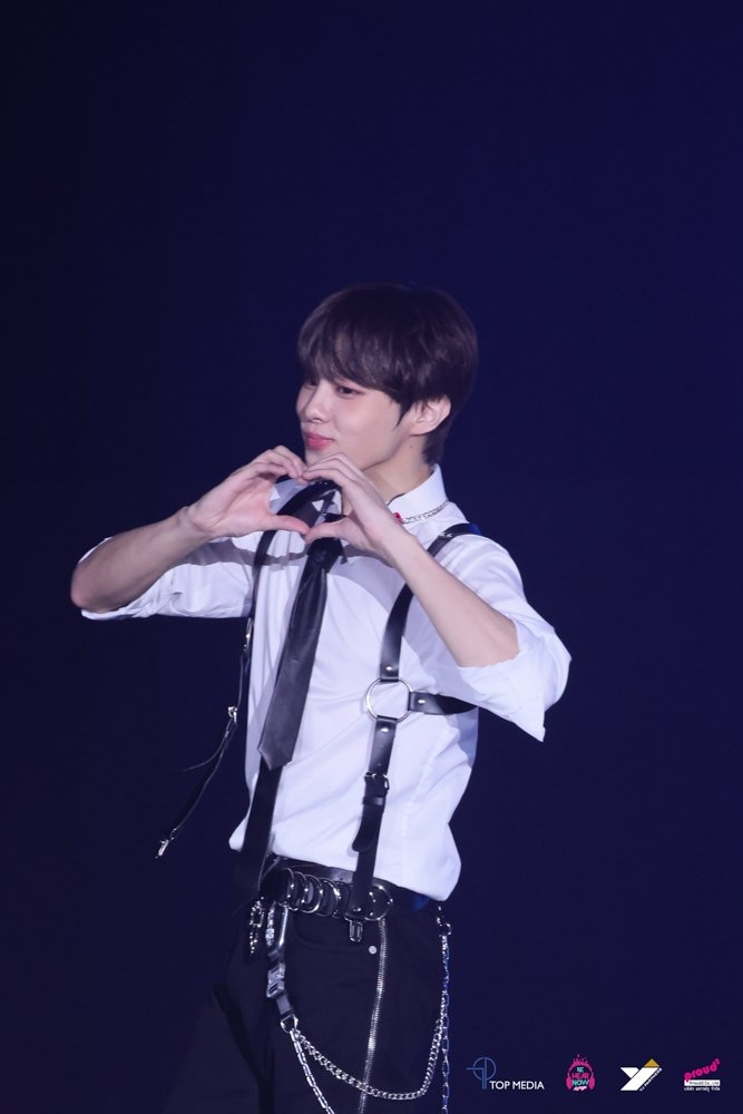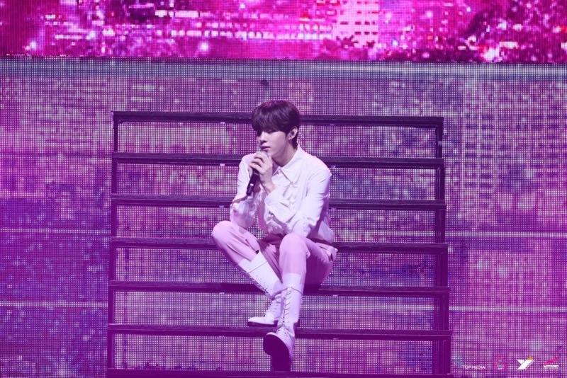 "ถึงตอนนี้ที่ผมได้เป็นศิลปินเดี่ยว ผมรู้ว่าผมยังไม่ได้เก่งมากหรือดีพอ ขอบคุณที่รักผมเสมอมา ผมเคยคิดว่าผมน่าจะชินที่ต้องอยู่คนเดียวแล้ว แต่พอวันนี้ผมรู้แล้วว่าการอยู่ด้วยกันมีความสุขมากกว่า แสดงว่าที่ผ่านมาผมอาจจะทำตัวเหมือนชิน เหมือนมีความสุข แต่อาจจะรู้สึกเหงามากกว่าพอวันนี้ผม อยู่ด้วยกันกับทุกคนรู้สึกมีความสุขมากกว่า ขอบคุณที่อยู่ด้วยกัน ขอบคุณที่ส่งความรักอันอบอุ่นมาให้ผมนะครับ ผมมีกำลังใจที่จะสู้ต่อไปเพราะความรักของทุกคนที่ส่งมาให้บางทีทุกคน ก็อาจจะรู้สึกท้อ หรือเหนื่อยผมก็หวังว่าผมจะเป็นเหตุผลที่ทำให้ทุกคนยิ้มได้ แม้ว่าจะเป็นแค่มีตเดียว รักทุกคนมากๆ ครับ อยากจะบอกทุกคนว่า ไม่ว่าจะเป็นแฟนชาวเกาหลี ชาวไทยหรือไม่ว่าจากประเทศไหน อยากจะขอบคุณทุกคนมากจริงๆ เพราะว่าความรักของทุกคนทำให้ผมได้มีโอกาสยืนบนเวทีใหญ่ๆ แบบนี้"