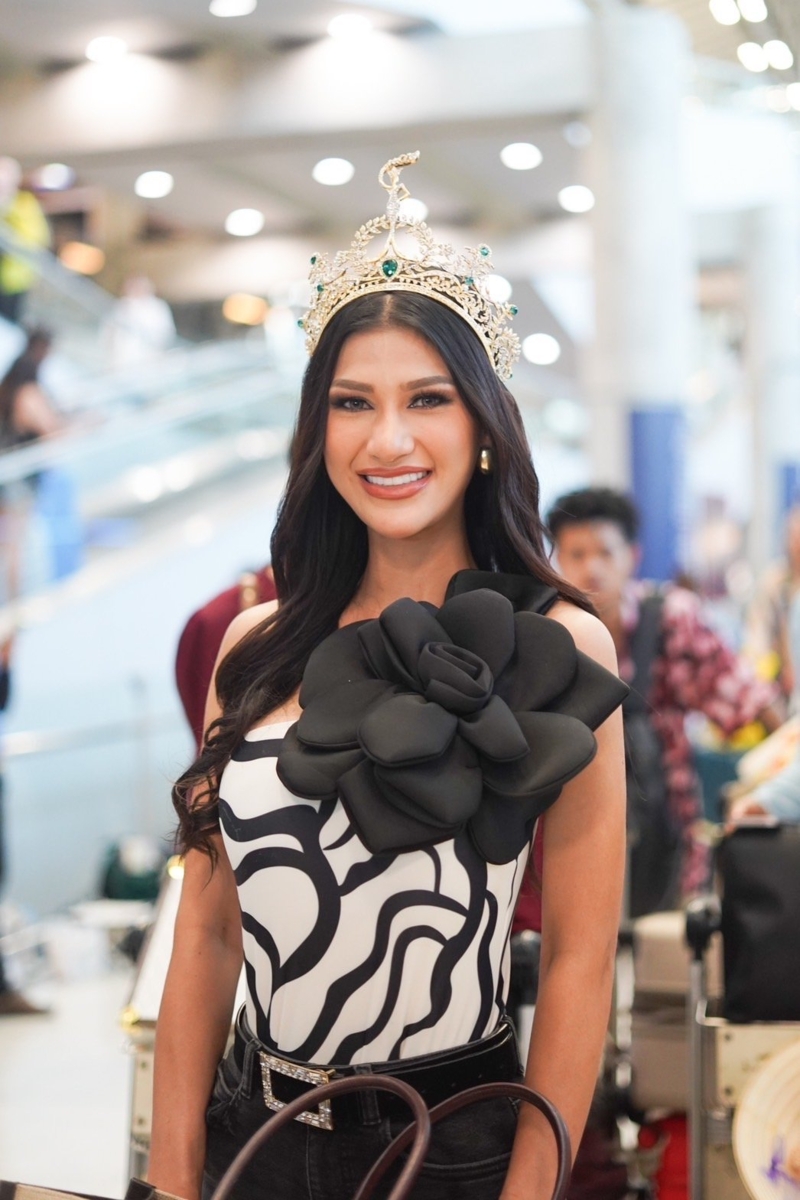 โดยนางงามทุกคนเดินทางมาพร้อมกับ คุณณวัฒน์ อิสรไกรศีล ประธานเจ้าหน้าที่บริหาร บริษัท มิสแกรนด์ อินเตอร์เนชั่นแนล จำกัด (มหาชน) และ คุณเทเรซ่า ชัยวิสุทธิ์ รองประธาน บริษัท มิสแกรนด์ อินเตอร์เนชั่นแนล จำกัด (มหาชน) โดยสายการบิน แบมบู แอร์เวย์ (BAMBOO AIRWAYS) เที่ยวบินที่ QH 323 เวลา 15.30 น. จากประเทศเวียดนาม หลังปฏิบัติภารกิจต่างๆร่วมกับ เวียดนาม ประเทศเจ้าภาพเป็นที่เรียบร้อย