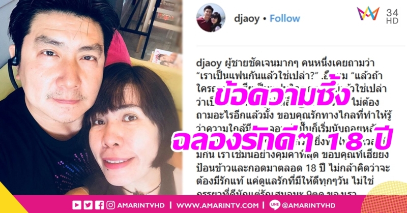 โดย “ดีเจอ้อย” ยังได้เล่าชีวิตรักทางไกลของเธอกับสามี “ไนซ์ นวพล” ที่เป็นรักทางไกลมา 24 ปี โดยเธออยู่ที่กรุงเทพส่วนสามี อยู่ที่ อ.แม่สอด จ.ตาก