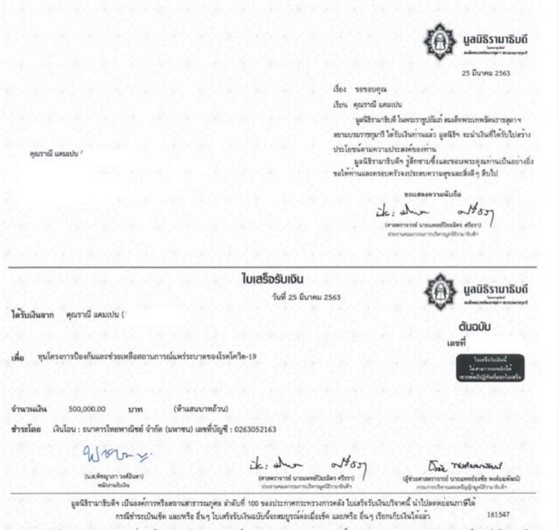 เนื่องจาคเกิดสถานการณ์โรคไวรัสโควิด-19ระบาดในหลายประเทศทั่วโลกรวมถึงประเทศไทยของเรา ซึ่งทำให้อุปกรณ์ทางการแพทย์ไม่เพียงพอต่อการรักษา ทำให้ดารา-นักแสดง และคนในวงการบันเทิงหลายๆคนต้องมาร่วมกันบริจาค เพื่อช่วยในการดูแลรักษาผู้ป่วยโรคโควิด-19 รวมถึงแพทย์ที่ปฏิบัติงานในการรักษาผู้ป่วยอีกด้วย ล่าสุดนางเอกสาว “เบลล่า ราณี แคมเปน” ได้ร่วมบริจาคให้กับโรงพยาบาล 5 แห่ง เป็นจำนวนเงินรวมทั้งหมด 2.5 ล้านบาท