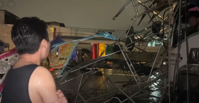 สืบเนื่องจากระหว่างที่ คณะหมอลำใจเกินร้อย ได้ทำการแสดงอยู่ที่พื้นที่ พระประแดงอาเขต ถ.สุขสวัสดิ์ อ.พระประแดง จ.สมุทรปราการ ท่ามกลางแฟนเพลงที่มารับชมเป็นจำนวนมาก แต่ปรากฎว่าช่วงเวลาประมาณเที่ยงคืน วันที่ 5 ต.ค. 68 ได้เกิดเหตุลมพัดแรงและฝนตกหนัก ทำให้เวทีการแสดงของ คณะหมอลำใจเกินร้อย ล้มลงมาได้รับความเสียหาย จนต้องปิดทำการแสดงก่อนเวลา ซึ่งตามกำหนดการเดิมจะยุติการแสดงในเวลา 01.00 น. วันที่ 6 ต.ค. 68 แต่โชคดีที่ไม่มีทีมงาน หรือผู้เข้าชมได้รับบาดเจ็บแต่อย่างใด