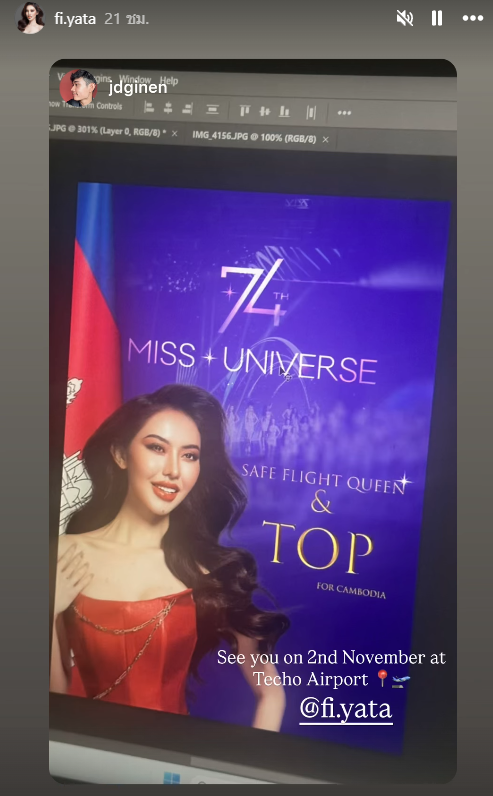 หลังจาก "ไท เนียรี โสเจียตา" มิสยูนิเวิร์สกัมพูชา 2025 ผู้ชนะเลิศจากผู้เข้าประกวดทั้งหมด 19 คน และเป็นหลานสาวของ พลโทหญิง มาลี โสเจียตา โฆษกกระทรวงกลาโหมกัมพูชา เคยกล่าวว่า จะเดินทางมาประกวดอย่างแน่นอน เพราะตั้งใจว่าจะต้องมีธงชาติกัมพูชาอยู่บนเวทีด้วย