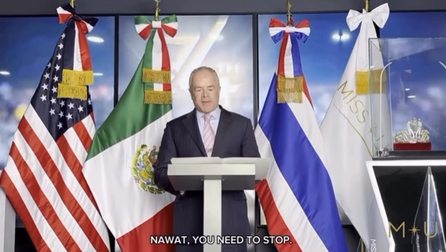 ทั้งนี้ ผมต้องการทำให้ชัดเจนถึงความขุ่นข้องหมองใจต่อ คุณณวัฒน์ ที่ปฏิบัติต่อ ฟาติมา มิสยูนิเวิร์สเม็กซิโก เขาเหยียดหยามและดูหมิ่นเธอ แสดงให้เห็นถึงความไม่ให้การเคารพ ในการเรียกเจ้าหน้าที่รักษาความปลอดภัย เพื่อพยายามให้เธอเงียบและขับไล่เธอ