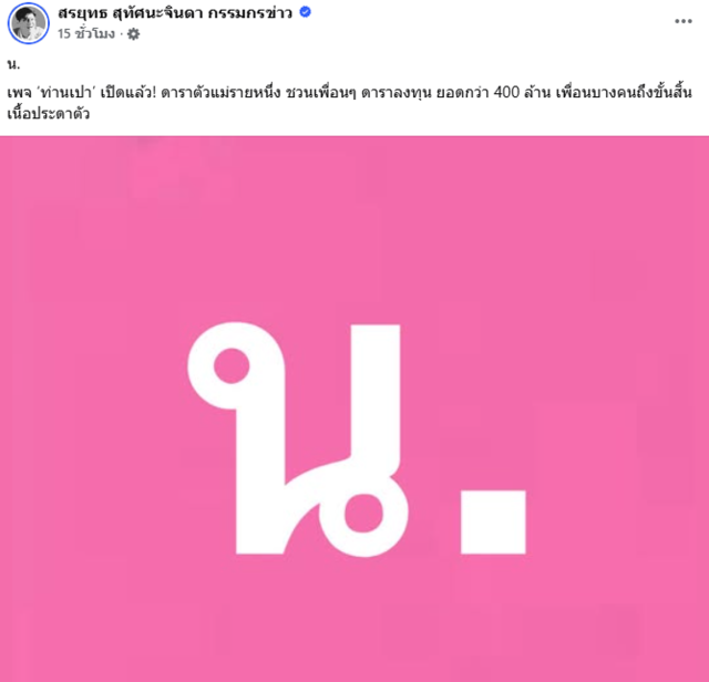 ทั่วทั้งโซเชียลยังคงจับตา หลังจากเพจ "ท่านเปา" ออกมาแฉเรื่องสะเทือนวงการบันเทิงด้วยข้อความว่า "เรื่องนี้กำลังจะกลายเป็นประเด็นใหญ่ในวงการบันเทิง หลังมีดาราระดับตัวแม่รายหนึ่ง ถูกกล่าวหาว่าชักชวนเพื่อนๆ ให้ร่วมลงทุน โดยอ้างผลตอบแทนเป็นดอกเบี้ยและปันผล แต่สุดท้ายกลับผิดนัดชำระหนี้ บางคนถูกยืมเงินแล้วไม่ได้คืน จนยอดความเสียหายรวมพุ่งกว่า 400 ล้านบาท"