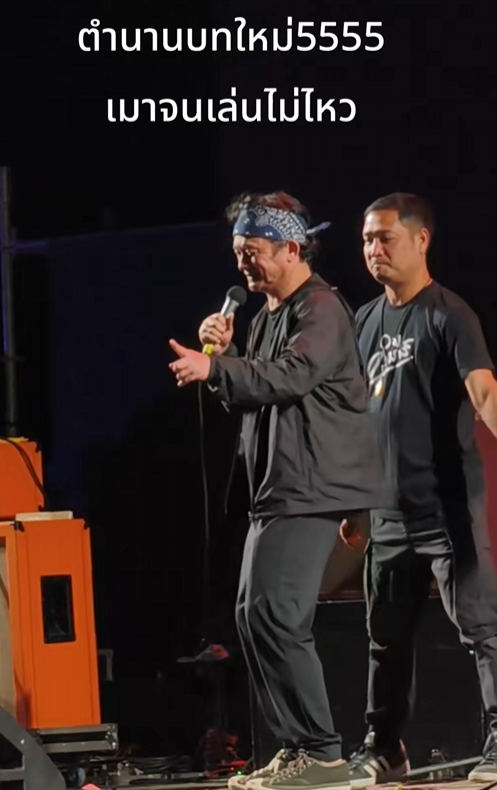 ระหว่างที่ทำการแสดงอยู่นั้น ได้มีอาการเดินไม่ค่อยตรง และจังหวะที่ร้องเพลงบางช่วงได้หยุดไป ก่อนจะพูดคุยกับแฟนคลับแล้วเผยว่า "ผมเมามากเลย เดี๋ยวจะมีวงดนตรีที่จะมาสร้างความสุขให้ ทำไมผมต้องเมาขนาดนี้ (หัวเราะเสียงดัง)" จากนั้นได้ร้องเพลง แกเพื่อนฉัน โดยที่แฟนเพลงต่างช่วยกันร้อง
