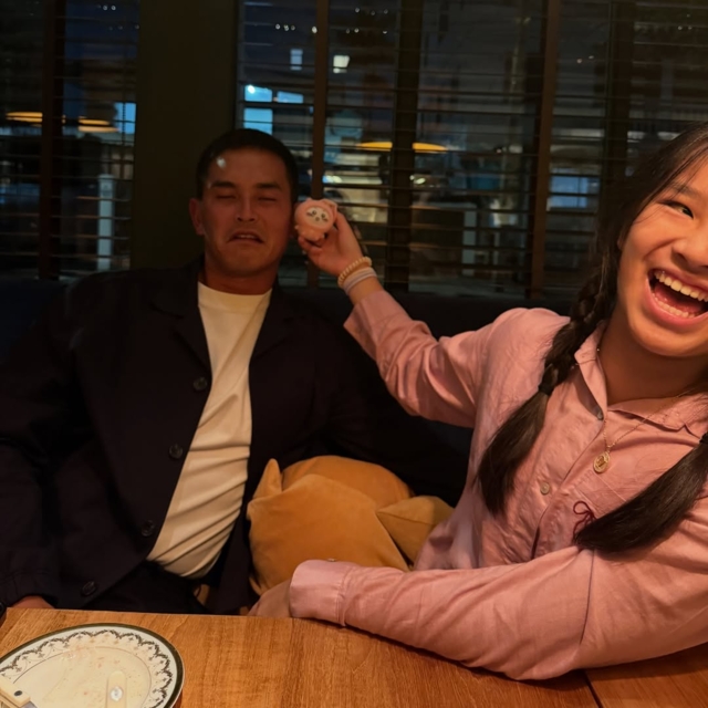 พร้อมกันนี้ยังได้เผยแคปชั่นระบุว่า "สุขสันต์วันพ่อครับ ขอบคุณสาวๆ ที่พาผมมาเลี้ยงข้าววันพ่อ การด์ DIY จากแผ่นรองจานบอนชอนน่ารักมากครับแม้จะเป็น last minute really love it"