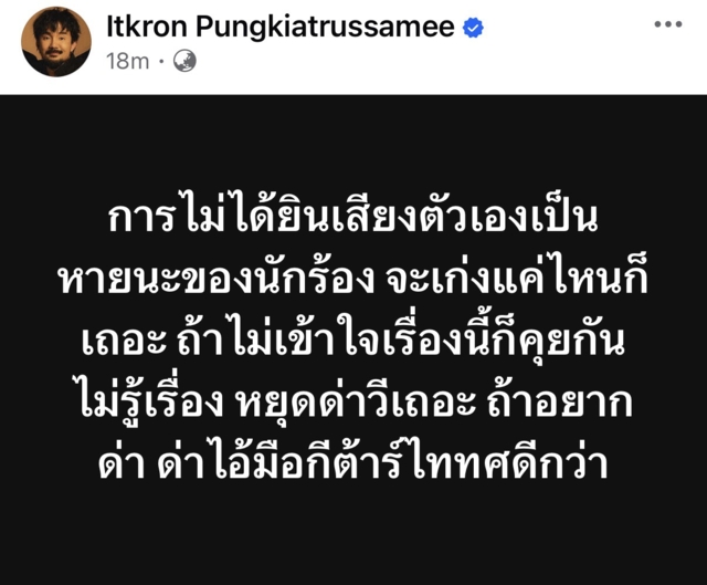 ขณะที่ "จ๋าย ไททศมิตร" หรือ จ๋าย อิชณน์กร" ได้ออกมาโพสต์แสดงความคิดเห็นว่า "การไม่ได้ยินเสียงตัวเองเป็นหายนะของนักร้อง จะเก่งแค่ไหนก็เถอะ ถ้าไม่เข้าใจเรื่องนี้ก็คุยกันไม่รู้เรื่อง หยุดด่าวีเถอะ ถ้าอยากด่า ด่าไอ้มือกีต้าร์ไททศดีกว่า" ทั้งนี้ปรโยคหลังเป็นการเอ่ยแซว "มีน ไททศมิตร" หรือ "มีน ปัณณสิทธิ์" มือกีตาร์ของวงที่ได้ไปโชว์ฝีมือกีตาร์ภายในพิธีเปิดด้วย