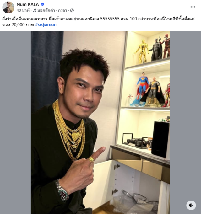 กลายเป็นไวรัลสนั่น หลังจากเมื่อวานนี้ราคาทองพุ่งทะลุ 8 หมื่น ทางด้านของ "หนุ่ม กะลา" ก็ควงแฟนสาว "จ๊ะโอ๋ งามพริ้ง" เดินเข้าร้านทองทันที พร้อมเผยภาพกองเงินปึกใหม่ และสร้อยทองเต็มคอ โดยระบุแคปชั่นว่า "ช่วงตื่นทอง ออมไว้สักหน่อย #ออมทองไว้ดองสาว #หนุ่มกะลา ทองสวยๆจากห้างทองเพชรมังกร พระพุทธบาท 🙏🏽 ขอบคุณพี่สาครับ"