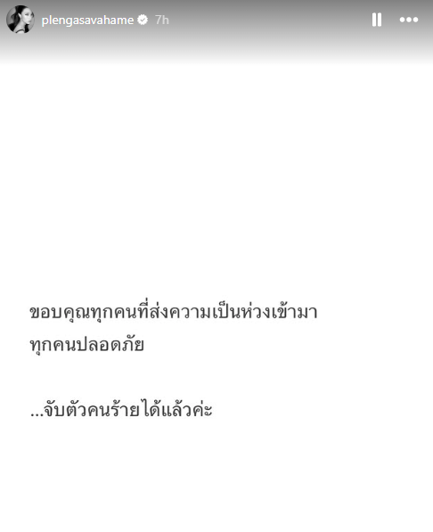 ล่าสุด "เพลง ชนม์ทิดา อัศวเหม" ศิลปินชื่อดังที่เป็นหนึ่งในทายาทของตระกูล อัศวเหม" ได้ออกมาโพสต์ผ่านอินสตาแกรมสตอรี่ว่า "ขอบคุณทุกคนที่ส่งความเป็นห่วงเข้ามา ทุกคนปลอดภัย จับตัวคนร้ายได้"