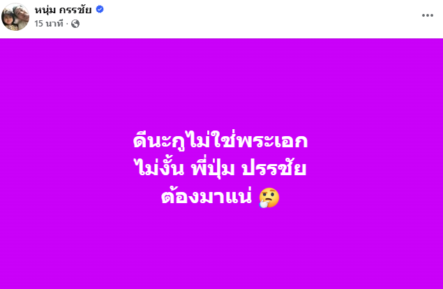 ล่าสุด ทางด้านของ "หนุ่ม กรรชัย" พิธีกรดังถึงกับเคลื่อนไหวในโลกโซเชียลระบุว่า "ดีนะกูไม่ใช่พระเอก ไม่งั้น พี่ปุ่ม ปรรชัย ต้องมาแน่" หลังจากโพสต์ไปนั้นก็ทำเอาหลายคนเข้ามาคอมเมนต์แซวสนั่น