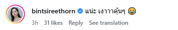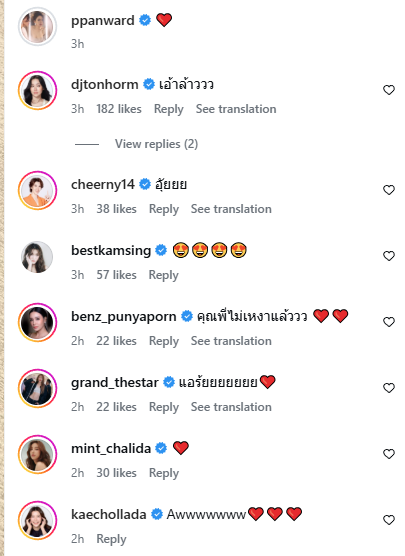 หลังจากโพสต์ออกไปนั้นก็ทำเอาอินสตาแกรมแตก คนในวงการแห่เข้ามาคอมเมนต์สนั่น อาทิ แน่ะ เงาาาคุ้นๆ, บอกคนข้างๆ ให้ไปเล่น สกีด้วย, คุณพี่ไม่เหงาแล้ววว, เงาหวานมากค่ะ, อร๊ายยยย รอฟังงงง เป็นต้น
