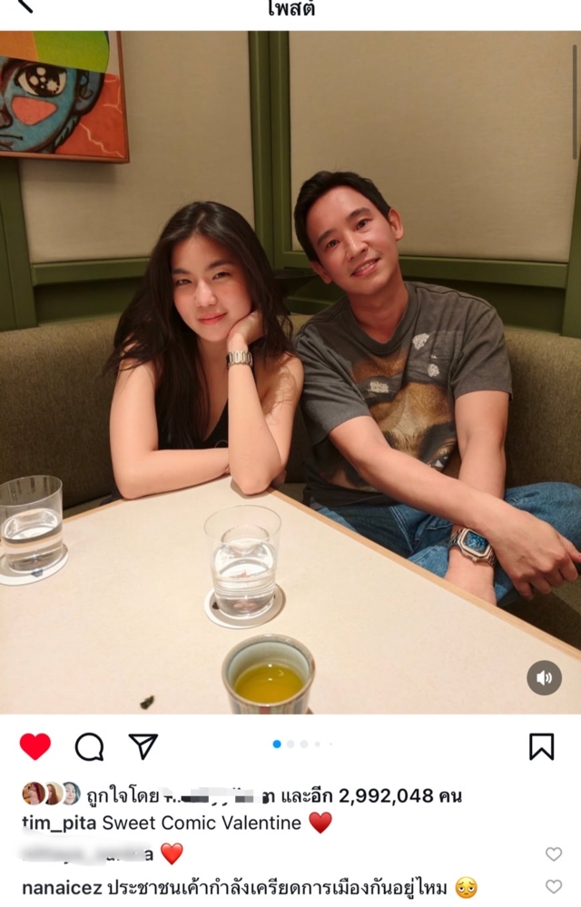 เปิดตัวรับวาเลนไทน์!เมื่อช่วงค่ำเมื่อวันที่ 14.ก.พ.ที่ผ่านมา ทิม พิธา และ ก้อย อรัชพร ก็ทำเซอร์ไพรส์แฟนๆ ด้วยการเปิดตัวในอินสตาแกรมโพสต์ภาพโมเมนต์หวานๆมอบดอกไม้ให้กัน แถมสองครอบครัวเจอหน้ากันแล้ว ขณะที่ชาวเน็ตต่างเข้าไปยินดีกับความรักที่สดใสของทั้งคู่เป็นจำนวนมาก