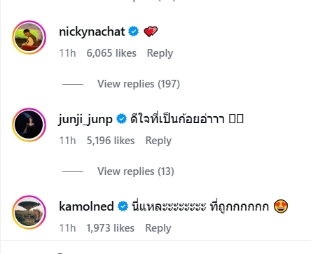อย่างไรก็ตาม หนุ่ม นิกกี้ ก็ได้คอมเมนต์แสดงความยินดีกับอดีตคนรักก้อยอรัชพร ด้วยอีโมจิหัวใจ ด้วย