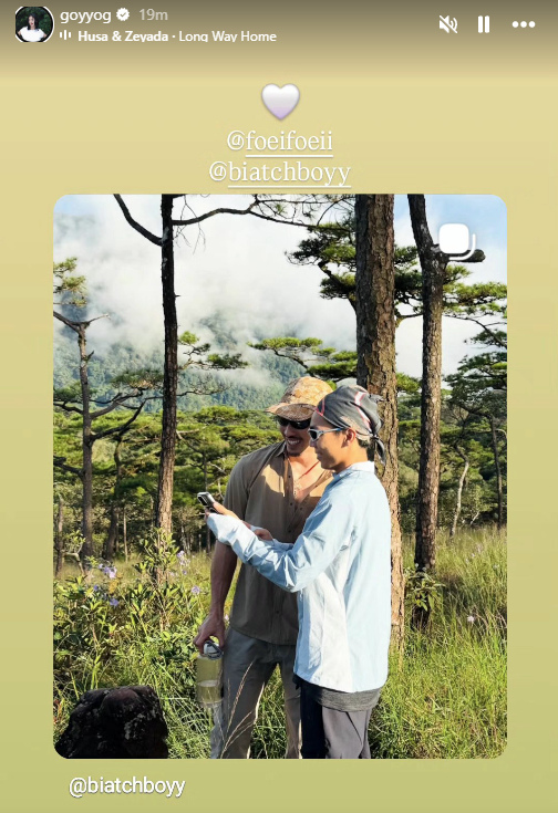 ล่าสุด เจ้าตัวได้อัปเดตไอจีสตอรี่ เป็นภาพกับสามสาวแก๊งก้อยนัตตี้ดรีม พร้อมแคปชั่น "I never regret having these two in my life" แต่ทำเอาหลายคนต่างจับตามองไม่ใช่น้อย คงไม่พ้นภาพที่เคยไปปีนเขากับแก๊ง "เฟย ภัทร" ซึ่งเป็นอีกโมเมนต์ที่ทำให้เกิดกระแสคู่จิ้นกับ "ท็อป ทศพล"
