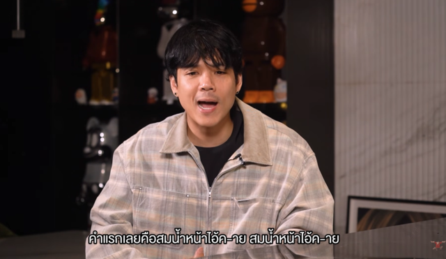 "ยินดีด้วยอย่างบริสุทธิ์ใจ เพราะผมรู้สึกว่าเขาก็เป็นคนที่พร้อมนะ เหมาะสมดีทุกอย่าง แล้วคนที่เขาเปิดตัวด้วยก็ดีเหมาะสมกับเขาทุกอย่าง ถามว่าอกหักไหม มันก็ไม่ ถ้าเราไม่มีใครเลยก็อาจจะอกหัก แต่เราก็มีอ่ะ เราก็เ..ยอ่ะ เราก็มีเราก็ไม่ใช่แบบคนดี แบบไม่มีใครอ่ะ แต่เราก็แบบมันเลิกมานานแล้ว จากช้า จากเร็วมันก็ต้องจาก"