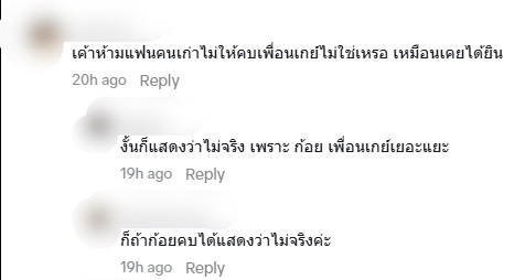 แต่ไม่วายเจอเสียงวิจารณ์ และคำถามที่โยงไปถึงความสัมพันธ์ครั้งเก่า ระบุว่า "เค้าห้ามแฟนคนเก่าไม่ให้คบเพื่อนเกย์ไม่ใช่เหรอ เหมือนเคยได้ยิน" ก่อนที่ชาวโซเชียลจะเข้ามาคอมเมนต์สนั่น อาทิ