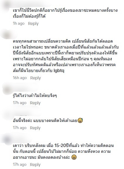 - คนทุกคนสามารถเปลี่ยนความคิด เปลี่ยนนิสัยกันได้ตลอดเวลาไม่ใช่หรอคะ ขนาดตัวเราเองเมื่อปีที่แล้วแล้วแล้วแล้วกับปีนี้ยังนิสัยอีกแบบเพราะปีนี้เราก็พยามปรับปรุงตัวเองให้ดีขึ้นเพราะไม่อยากกลับไปนิสัยเสียเหมือนปีก่อน ๆ คุณทิมเองอาจจะปรับทัศนคติแล้วหรือเปล่าเพราะเราเองก็เห็นว่าพรรคส้มก็มีนโยบายเกี่ยวกับ lgbtq