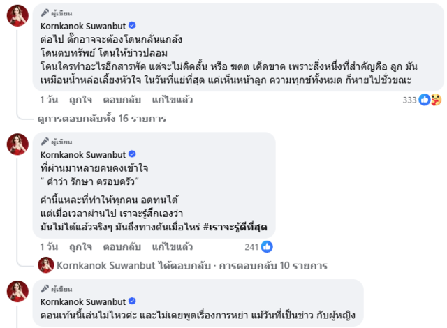 - คอนเท้นนี้เล่นไม่ไหวค่ะ และไม่เคยพูดเรื่องการหย่า แม้วันที่เป็นข่าว กับผู้หญิง