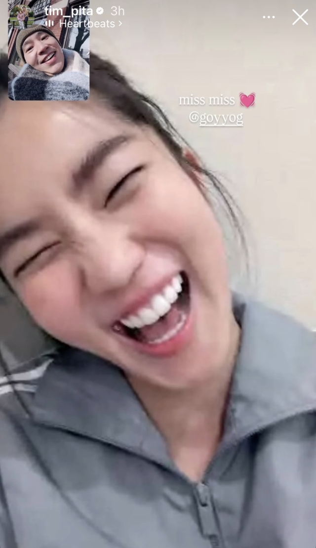 ไม่กี่ชั่วโมงถัดมา "ทิม พิธา" ได้ออกมาเคลื่อนไหว โพสต์ภาพแคปหน้าจอ ขณะวิดีโอคอลหา ก้อย แต่ดูเหมือนจะเป็นอีกชุด พร้อมข้อความว่า "คิดถึง" เรียกว่าแข่งกันคลั่งรักสุดๆ