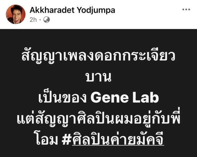 รวมถึงทางด้านของ "ก้อง ห้วยไร่" โพสต์ว่า "สัญญาเพลงดอกกระเจียวบาน เป็นของ Gene Lab แต่สัญญาศิลปินผมอยู่กับพี่โอม #ศิลปินค่ายมัคจี"