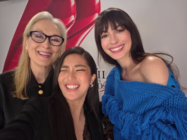 พร้อมกระทบไหล่ "เมอรีล สตรีป, แอนน์ แฮททาเวย์" นักแสดงนำของเรื่อง และเป็นตัวแทนคนไทยทั้งประเทศ ถ่ายรูปเซลฟี่มาฝากแฟนๆ อีกด้วย