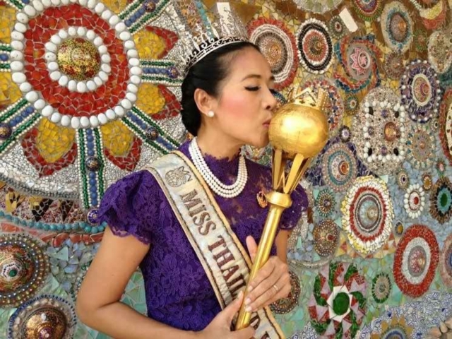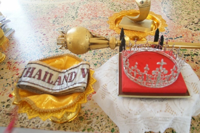 พระอาจารย์ก็เลยบอกว่าอยากจะเอาไว้ข้างล่าง เอาไว้ให้คนดูว่า “ดูสิเราไม่ยึดติดกับสิ่งของ ไม่ยึดติดกับอะไรเลย” กว่าจะได้มาในปีนั้นต้องต่อสู้แค่ไหนกว่าจะได้มงกุฎ คฑา และสายสะพายมา แต่วันหนึ่งก็ไม่ยึดติด ถวายเป็นพุทธบูชา ให้คนได้ดูว่าเราไม่ได้ยึดติดกับสิ่งของพวกนี้ (แม่อ้วน) ฉันว่ามีนางงามคนเดียวในโลกนะ ที่ได้มงกุฎระดับประเทศมาแล้วก็เอาไปถวาย เพื่อเป็นพุทธบูชา เป็นสิ่งสอนใจ