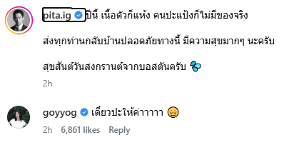 แต่ที่ทำเอากรี๊ดหนักยิ่งกว่าเดิม คงไม่พ้น "ก้อย อรัชพร" ที่โผล่คอมเมนต์ว่า "เดี๋ยวปะให้ค่าาาาา" จน "ทิม พิธา" ถึงกับเข้ามาตอบกลับว่า "อุ๊ย..."