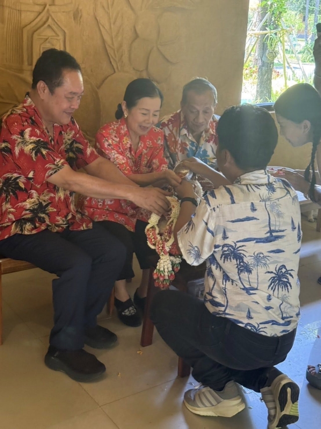 บรรยากาศเป็นไปอย่างชื่นมื่น โดย เสก โลโซ ได้ร่วมรดน้ำขอพรจากผู้ใหญ่ในครอบครัว รวมถึง พ.ต.อ.ทวี ซึ่งมีความเคารพนับถือกันอย่างใกล้ชิด