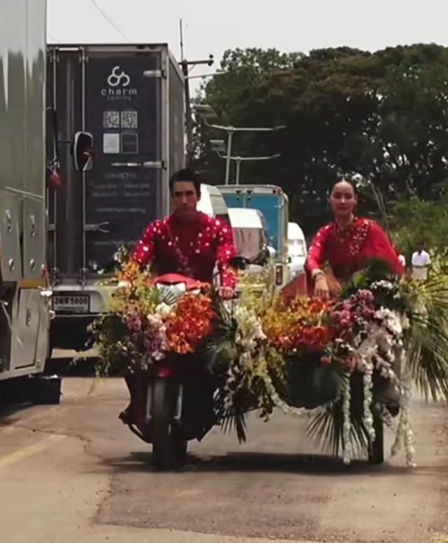 อีกหนึ่งโมเมนต์ที่หลายคนต่างแชร์คงไม่พ้นวินาทีหลังจากทำพิธรสู่ขอเสร็จ ณเดชน์ และ ญาญ่า ได้นั่งรถมอเตอร์ไซค์ซาเล้งพ่วงข้าง พร้อมพากันซูมเลขสวยที่ท้ายรถ เลขทะเบียน 1 กฒ ขอนแก่น 4609