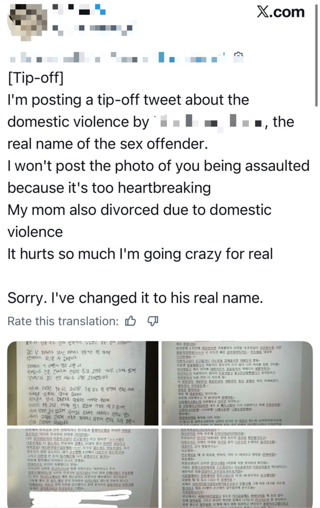 กลายเป็นข่าวร้อนสะเทือนวงการบันเทิง จากกรณีสื่อต่างประเทศมีรายงานว่า นาย A (นามสมมติ) พี่ชายของนักร้องสาวชื่อดังชาวเกาหลีใต้ ได้ถูกจับในคดีล่วงละเมิดทางเพศสตรีมเมอร์สาว ก่อนที่ในเวลาต่อมา จะมีผู้ใช้บัญชีรายหนึ่งอ้างว่า นาย A ใช้ความรุนแรงภายในครอบครัว