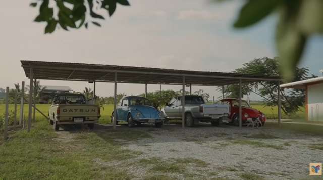 โดยเล่าว่า "คนเราอายุไม่ถึง 100 ปี ผมเกษียณมาแล้วก็ใช้บำนาญในแบบของผม ก็เลยมาเป็นบ้านหลังนี้ ถ้าวันนึงผมล้มหายตายจากไป ก็ไม่เสียชาติเกิด ผมไม่ได้มีเงินทองมาก แต่มีสมบัติให้ลูกเมีย วันนึงถ้าพ่อได้จากไป ได้สร้างตรงนี้ไว้ให้ลูกแล้ว มีบ้านไม่ต้องผ่อน มีที่อยู่อาศัย มีที่กิน มีนาข้าว ถ้าอยู่แบบรู้ระดับตัวเอง กับเงินที่มีไว้ให้ ลูกเรียนจบมหาวิทยาลัยที่ต่างจังหวัดได้เลย"