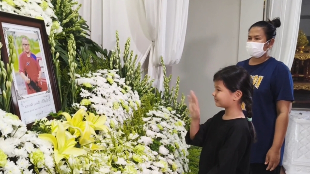 โดยภรรยาได้นำรูปแดนนี่มาวางหน้าโลงศพ ก่อนที่น้องเอวา ลูกสาวแดนนี่ จะเดินมาบอกลาพ่อ พร้อมกับน้ำตาคลอเบ้า ก่อนจะหันไปกอดแม่ ทำเอาคนในงานกลั้นน้ำตาไว้ไม่อยู่