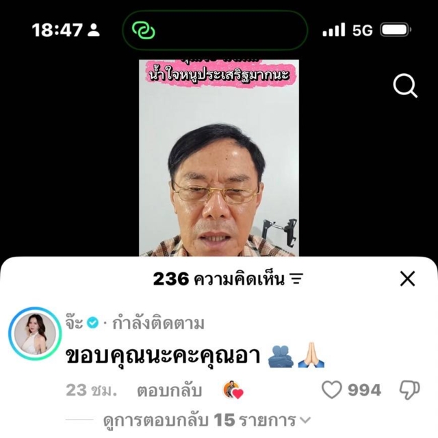 ทันทีที่คลิปถูกเผยแพร่ออกไป จ๊ะ นงผณี ได้เข้ามาคอมเมนต์ตอบกลับอย่างรวดเร็วและนอบน้อมว่า "ขอบคุณนะคะคุณอา 🫂🙏" แสดงให้เห็นถึงสัมมาคารวะและความผูกพันที่น่ารักระหว่างผู้ใหญ่และผู้น้อยในวงการ
