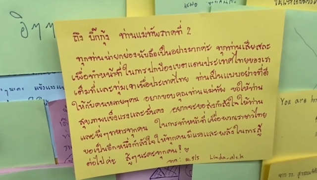 ภายในกิจกรรมยังมีการมอบกระดาษเขียนข้อความให้กำลังใจจากนักเรียนโรงเรียนสุรธรรมพิทักษ์ยังร่วมเขียนข้อความให้กำลังใจผ่านกระดาษโพสต์อิท เช่น ท่านแม่ทัพเสียสละ เพื่อประเทศชาติ ขอบคุณจากใจ, พี่ทหารสู้ๆ ครับขอให้ทุกคนปลอดภัย และ ประเทศไทยต้องไม่เสียดินแดน เพื่อส่งถึงเหล่าทหารกล้าในพื้นที่ชายแดน ซึ่งกำลังมีความตึงเครียดจากข้อพิพาทกับประเทศเพื่อนบ้านในขณะนี้