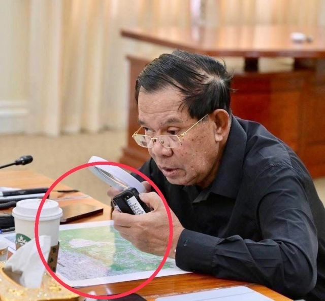 (28 ก.ค. 2568) ผู้สื่อข่าวรายงานว่าจากรูปภาพ ของสมเด็จ ฮุน เซน ที่เผยแพร่ออกมา ทางสื่อ โซเชียลมีเดียต่างๆ ในลักษณะมือเป็นระวิง มือหนึ่งถือวิทยุสื่อสารแบบใส่ซิมการ์ด สั่งการแนวรบ ไกลข้ามจังหวัดได้ อีกมือหนึ่งถือแว่นขยายเพื่อดูแผนที่