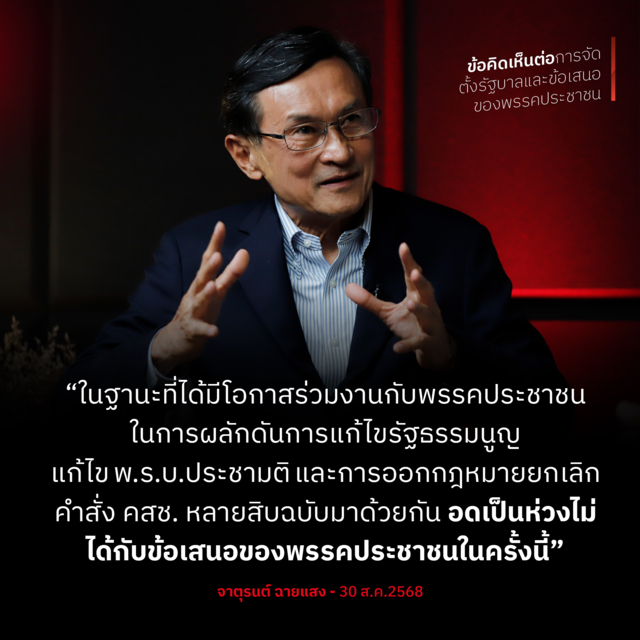 นายจาตุรนต์ ฉายแสง สส.บัญชีรายชื่อ พรรคเพื่อไทย โพสต์เฟซบุ๊กล่าสุดเรื่อง ข้อคิดเห็นต่อการจัดตั้งรัฐบาลและข้อเสนอของพรรคประชาชน
