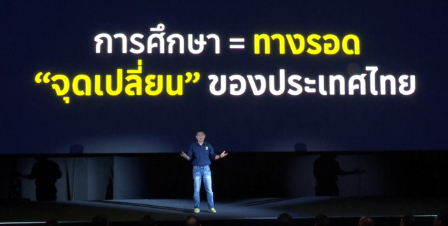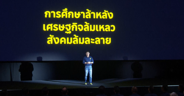 ทันทีที่ศาสตราจารย์ ดร.สุชัชวีร์ สุวรรณสวัสดิ์ หัวหน้าพรรคไทยก้าวใหม่ ขึ้นกล่าวบนเวทีเปิดตัวพรรคเรียกเสียงปรบมือกระหึ่ม โดยหัวหน้าพรรคไทยก้าวใหม่กล่าวว่า "ทุกชาติที่พัฒนาแล้วในโลก ยกระดับคนจากความยากจนสู่ความมั่งคั่งจากการสร้างคนด้วยการศึกษา เพราะการศึกษาคือปากท้อง คือเศรษฐกิจ คืออนาคต คือยาแก้จน คืออาวุธที่มีอานุภาพสูงสุด ดังนั้นสิ่งที่จะฟื้นฟูประเทศไทย ต้อง "เริ่มต้นจากการสร้างคน" "เริ่มต้นจากการศึกษา" พรรคไทยก้าวใหม่ จึงประกาศชูการศึกษาเป็นธงนำการพัฒนาประเทศไทย เพื่อพาคนไทย "พ้นความยากจน"