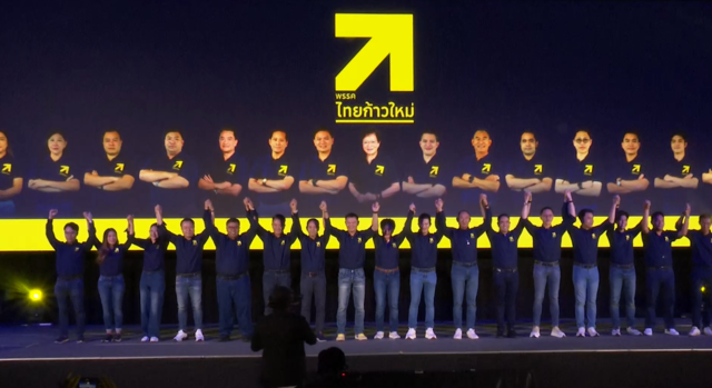 ทั้งนี้ความหมายโลโก้ของพรรคก้าวใหม่ คือ ลูกศรชี้ขึ้นหมายถึงการก้าวใหม่ การพัฒนา สีเหลืองเลม่อน แสดงถึงพลังงาน ความรู้ ความคิดสร้างสรรค์ และความหวัง สีกรมท่า หมายถึง ความมั่นคง สุขุม และความเป็นมืออาชีพ โลโก้พรรคไทยก้าวใหม่สื่อสารอย่างก้าวใหม่ด้วยการพัฒนา ด้วยพลังความรู้ ความคิดสร้างสรรค์ บนรากฐานที่มั่นคงและความเป็นมืออาชีพ