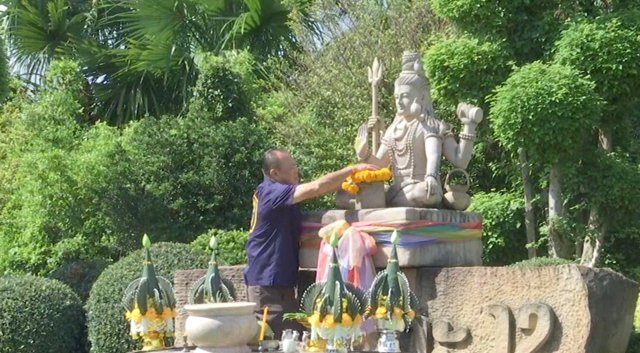 จากนั้น นายเนวิน และคณะ ได้ขึ้นไปทำพิธีทำบุญเลี้ยงพระ และสักการะสิ่งศักดิ์สิทธิ์ ยังบริเวณด้านบนปราสาทหินพนมรุ้งจำลอง เป็นการส่วนตัว โดยไม่อนุญาตให้สื่อมวลชนบันทึกภาพแต่อย่าง