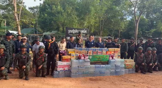จากนั้นเดินทางต่อมาที่ฐานปฏิบัติการแมงป่อง กองร้อยทหารพรานที่ 2604 มอบเสบียงอาหารบำรุงขวัญกำลังใจให้กับกำลังป้องกันชายแดนของกองกำลังสุรนารี ก่อนที่จะเข้าไปดูภายในฐานทัพ นานกว่า 20 นาที ก่อนจะออกมาให้สัมภาษณ์ โดยชี้ไปที่ ได้รั้วลวดหนามหีบเพลง พร้อมกล่าวว่า มีรั้วลวดหนามหีบเพลง ที่อยู่ตามแนวชายแดนไทยกัมพูชาอยู่แล้ว ซึ่งถือเป็นรั้วอย่างหนึ่ง ใครบอกว่า ยังไม่ทำรั้วไม่ใช่ รั้วนี่ทำตั้งหลายชั้น และตอกไปตามแนวเขต เพื่อป้องกันไม่ให้ฝ่ายตรงข้ามเข้ามา คิดดูว่าหากฝ่ายตรงข้ามจะเข้ามา ต้องนั่งตัดนั่งฝ่ารั้ว ซึ่งเรามีทหารประจำจุด ที่คนไปบอกว่าเป็นรั้วลวดหนามแล้วจะไปตัดเข้ามาได้ ไม่ได้ง่ายขนาดนั้น