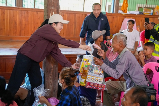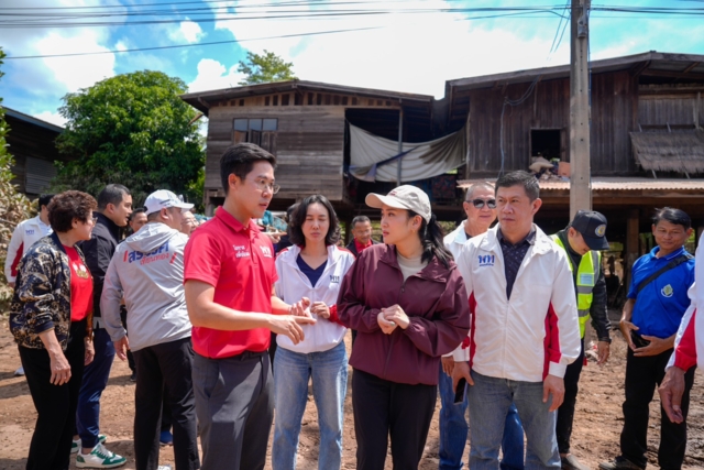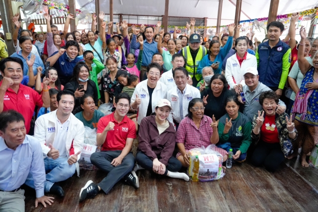โดยนางสาวแพทองธาร ได้รับฟังการรายงานจากกำนันผู้ใหญ่บ้านว่าเป็นน้ำที่มาเร็วและไปเร็ว แม้จะได้รับการแจ้งเตือนแต่ก็ ไม่ทันได้ตั้งตัว จากนั้นหัวหน้าพรรคได้เข้าไปเยี่ยมบ้านเรือนของชาวบ้าน ซึ่งต่างเล่าให้ฟังว่าน้ำท่วมมิดหลังคา เป็นการท่วมที่ไม่ทันและไม่ได้ตั้งตัวอะไรเลย