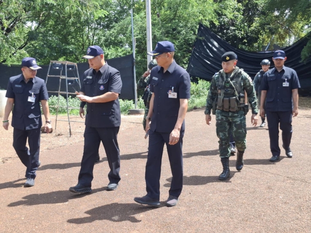 โดยพลตรีอภิรัชฎ์ รามนัฎ ผู้อำนวยการสำนักงานพัฒนาภาค 1 หน่วยบัญชาการทหารพัฒนา ได้ลงพื้นที่พร้อมฟังบรรยายจากทางเจ้าหน้าที่ปฎิบัติงาน ก่อนจะเดินเข้าไปสำรวจด้านในบริเวณชายเเดนใช้เวลาประมาณ 15 นาที เมื่อเสร็จสิ้นจึงให้สัมภาษณ์ว่า วันนี้ได้มาตรวจสอบเส้นบริเวณจุดหนองจาน ที่มีความยาวระยะทาง 400 เมตร ได้ปรับปรุงเสริมเเนวเขตขยายจาก 5 เมตร เป็น 8 เมตร ซึ่งเป็นการสร้างเพื่ออนาคต รวมไปถึงรับรองในเรื่องของการขนย้ายยุทโธปกรณ์ รวมถึงรถสายพานขนาดใหญ่