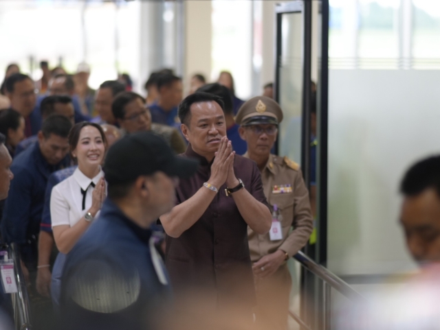 ต่อมาเวลา 16.50 น. นายกรัฐมนตรีเดินทางถึงท่าอากาศยานนครพนม โดนมีกลุ่มอาสาสมัครสาธารณสุขประจำหมู่บ้าน (อสม.) และประชาชนมาต้อนรับ พร้อมชูป้ายข้อความ เช่น รักท่านนายกฯ , ยินดีต้อนรับท่านนายก , อสม.กุรุคุ รักท่านอนุทิน สู้สู้ เป็นต้น พร้อมตะโกน “เรารักท่านนายกฯ”