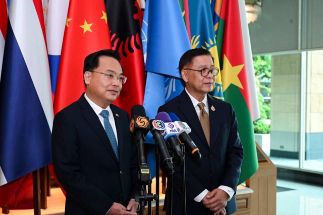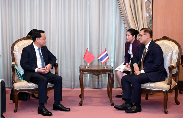 ด้าน เอกอัครราชทูตจีนประจำประเทศไทย กล่าวว่า ตนรู้สึกเป็นเกียรติและดีใจอย่างยิ่ง ที่มีโอกาสมาเข้าเยี่ยมคารวะท่านรัฐมนตรีว่าการกระทรวงการต่างประเทศคนใหม่ของประเทศไทย ทั้งสองฝ่ายมีการหารือเรื่องมิตรภาพความสัมพันธ์กันอย่างรอบด้าน ลึกซึ้ง ซึ่งปีนี้เป็นปีที่จีนกับไทยสถาปนาความสัมพันธ์ทางการทูตครบรอบ 50 ปี ถือเป็นโอกาสที่สำคัญและพิเศษมาก ซึ่งจีนและไทยจะมีกิจกรรมต่างๆ รวมถึงการแลกเปลี่ยนระดับสูงมากมาย เราเชื่อมั่นว่าความสัมพันธ์จีนไทยนั้น โดยเฉพาะในช่วงครบรอบ 50 ปี ในโอกาสที่สำคัญนี้ จะพัฒนาก้าวหน้าอย่างต่อเนื่องและส่งผลสำเร็จมากขึ้น วันนี้ก็มีการพูดคุยเรื่องที่สื่อในประเทศไทยให้ความสนใจคือเรื่องอาวุธที่กัมพูชาใช้ ในส่วนนี้ขอชี้แจงว่าประเทศจีนให้ความสำคัญอย่างสูงต่อการพัฒนาความสัมพันธ์กับไทยและถือว่าการพัฒนาความสัมพันธ์กับไทยเป็นสิ่งที่ให้ความสำคัญสูงสุดของการดำเนินการทางการทูตของจีน