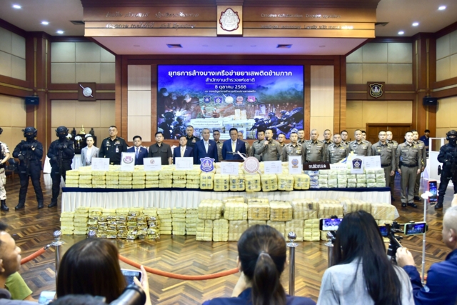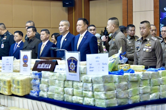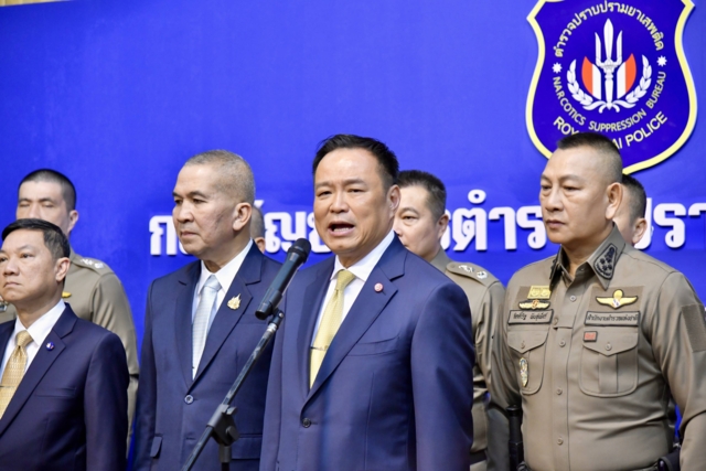 นายอนุทิน ชาญวีรกุล นายกรัฐมนตรีและรัฐมนตรีว่าการกระทรวงมหาดไทย พร้อมด้วย พล.ต.ท.รุทธพล เนาวรัตน์ รัฐมนตรีว่าการกระทรวงยุติธธรรม พล.ต.อ.กิตติ์รัฐ พันธุ์เพ็ชร์ ผู้บัญชาการตำรวจแห่งชาติ พ.ต.ต.สุริยา สิ่งหกมล เลขาธิการคณะกรรมการป้องกันและปราบปรามยาเสพและเจ้าหน้าที่ที่เกี่ยวข้องร่วมกันแถลงยุทธการล้างบางเครือข่ายยาเสพติดข้ามภาค