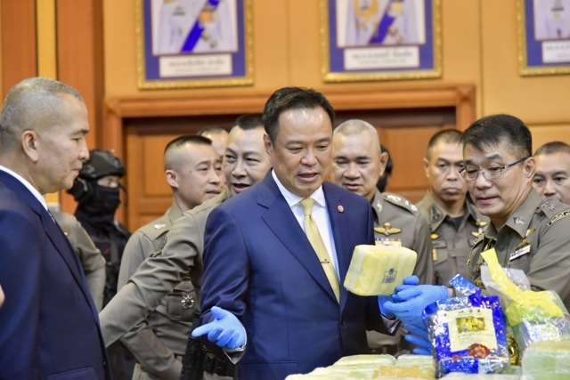 นายอนุทิน บอกว่า นโยบายปราบปรามยาเสพติดเป็นวาระแห่งชาติทุกรัฐบาล มอบนโยบายปฏิบัติให้กับสำนักงานตำรวจแห่งชาติ และหน่วยงานที่เกี่ยวข้อง ได้บูรณาการทำงานร่วมกันตลอด จึงมีการแถลงจับกุมยึดผู้ครองยาเสพติดเป็นประจำ ไม่ถึงสัปดาห์ก็มาแถลงที่นี่เป็นครั้งที่ 2 และได้รับรายงานจากผู้บัญชาการตำรวจแห่งชาติตลอดเวลา ขณะที่รายงานก็สามารถจับกุมได้อีก 1 ล็อตใหญ่ รัฐบาลและหน่วยงานที่เกี่ยวข้องไม่ได้ละเลยหรือละเว้นการปฏิบัติหน้าที่ จะเป็นศัตรูกับผู้ค้ายาเสพติดในทุกรูปแบบ ต้องการแสดงให้ผู้ที่ฝักใฝ่อย่าไปเกี่ยวข้องกับการค้ายาเสพติด ย้ำว่ามีโทษรุนแรง ไม่ว่าจะเป็นพวกค้า ผู้ครอบครอง หรือผู้ขนส่ง มีโทษเท่ากันหมด และตั้งใจจะกลับไปใช้นโยบายหนึ่งเม็ดเหมือนเดิม เพื่อมีประสิทธิภาพสูงสุดในการปราบปรามยาเสพติดให้สิ้นซากไป