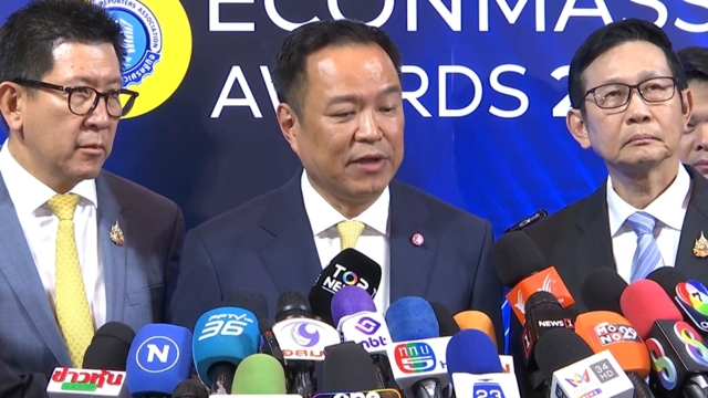 ขณะที่สื่อมวลชนแย้งว่า หมายถึงพรรคสีน้ำเงินใช่หรือไม่ นายอนุทินไม่ได้ตอบ แต่พยักหน้ารับ