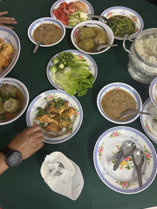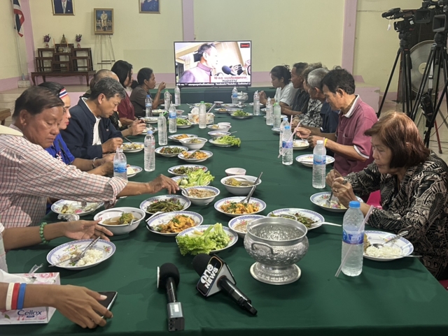 ส่วนเมนูอาหารบ้านๆ ที่ทุกคนรับประทานร่วมกันบนโต๊ะอาหารเย็นในวันนี้ ประกอบไปด้วย ป่นปลาทู ไข่เจียว ผัดผักบุ้ง ต้มมะระยัดไส้ และผลไม้ ซึ่งบรรยากาศการรับประทานอาหารทางผู้ว่าราชการจังหวัดและหน่วยทหารรับประทานอาหารร่วมกันอย่างชื่น