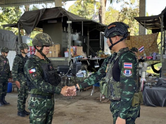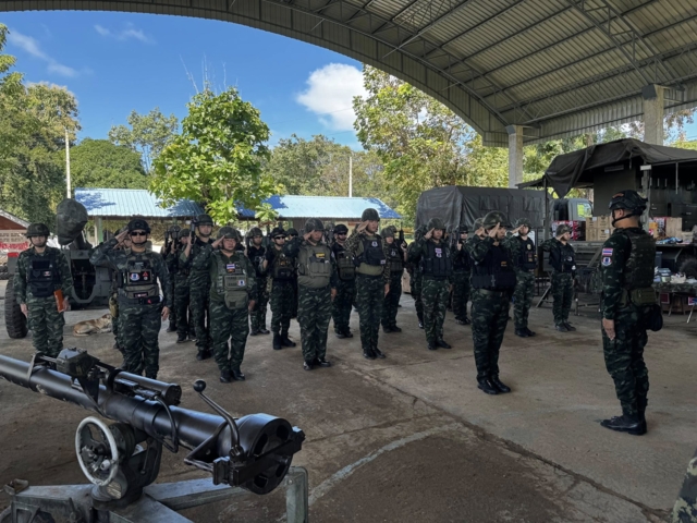 พ.ท.ศักดิ์ระพี ศรีมงคล ผบ.กอง สพบ.พล.ร.3 กระทำพิธีประดับเครื่องหมายยศ ให้กับกำลังพลระหว่างปฏิบัติภารกิจชายแดนไทย - กัมพูชา ที่ได้รับการประดับยศที่สูงขึ้น ในห้วงที่ผ่านมาของปีงบประมาณ 68 เพื่อเป็นขวัญและกำลังใจให้กำลังพล